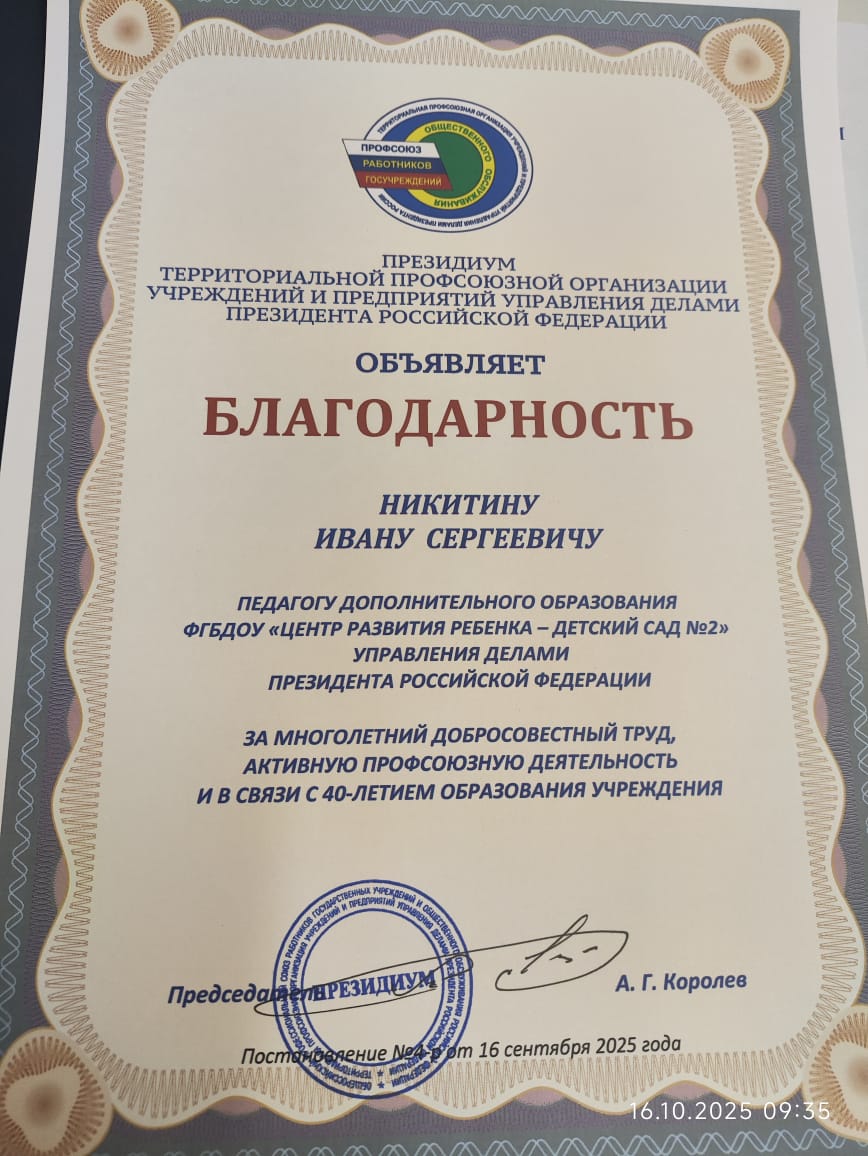 Управление делами Президента Российской Федерации Федеральное государственное бюджетное дошкольное образовательное учреждение "ЦЕНТР РАЗВИТИЯ РЕБЕНКА - ДЕТСКИЙ САД №2"