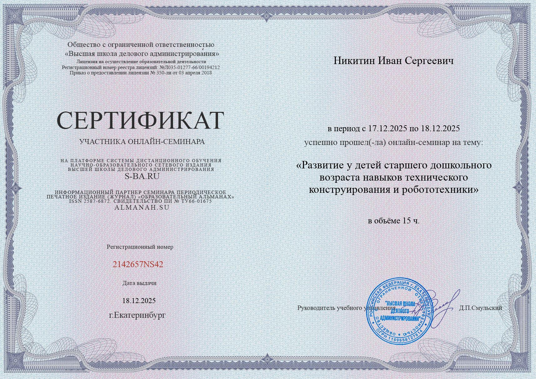 Диплом участника форума "Педагоги России: инновации в образовании"
