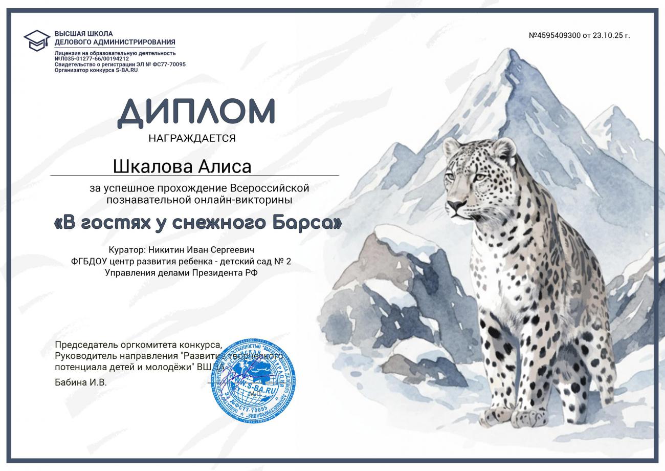 Всероссийская онлайн-викторина "В гостях у снежного Барса"